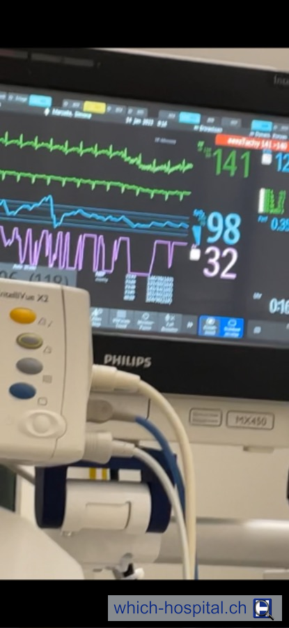 Emergency worked well, after two days of intensive care back to the medical department. Staff friendly but the situation was fatally noticed much too late. Emergency admission Triemli... in a coma since then. Symptoms were not recognized there.